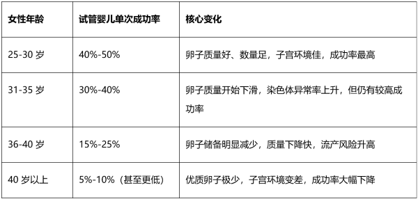 一张表看懂年龄对成功率的直观影响(数据为行业普遍参考)